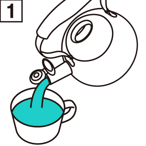 完全沸騰したお湯をマグカップ(湯飲み)に注ぎます。