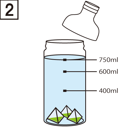 ボトルにお水をお好みの量入れます。※ここでは750mlとします