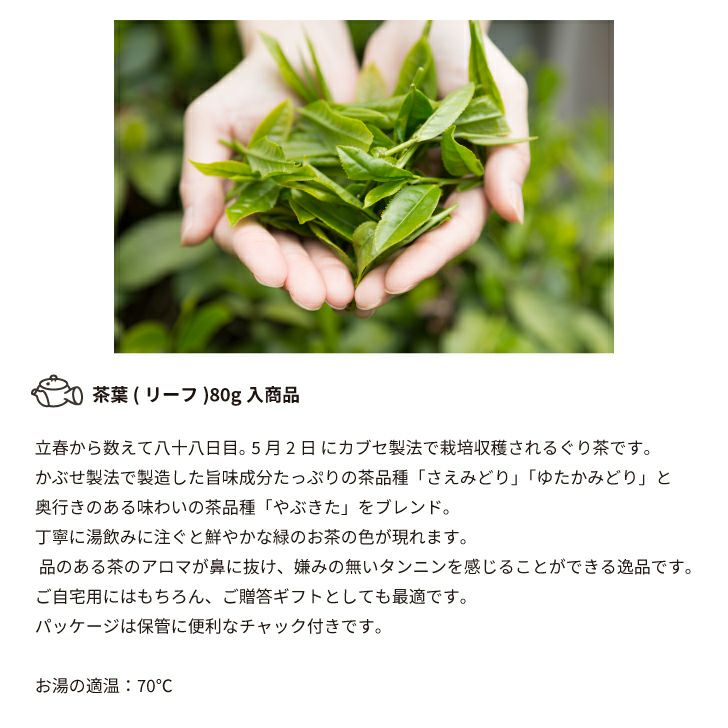 他の画像を見る 【2025年度産 新茶】ぐり茶八十八夜摘みセット 80g×2【新茶発売中】 2025年度産【新茶】 ※軽減税率対象 定価 ¥ 4,212 のところ 当店特別価格 ¥ 3,780 税込 販売を終了しました。 詳細を見る お気に入りに登録する
